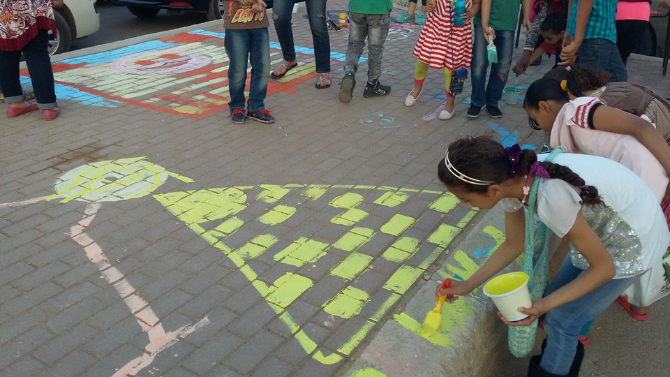 قبيل الفعاليات شارك الشماع الاطفال الرسم لهرم منقورع وقرص الشمس يشرق فوقه كما وقع لهم اهداءات كتابه كليوباترا